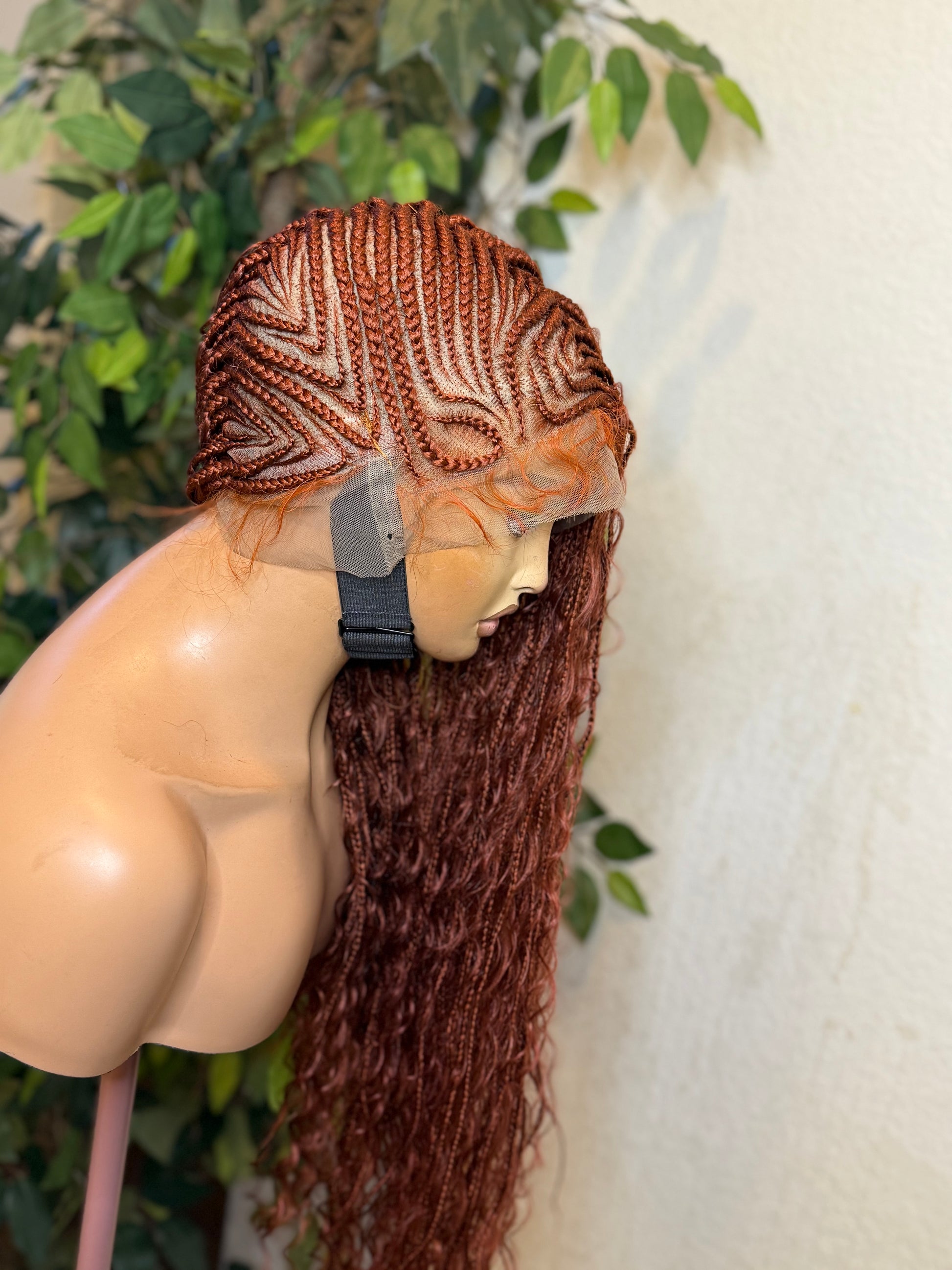 2 side zuma braids, made with hair blend fiber lace and with synthetic curls in 28-30 inches
